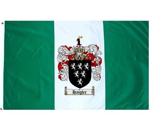 Haigler Family Crest Flag / Coat of Arms Flag. You will receive a high quality 3' x 5' Polyester flag with two brass grommets. Proudly display your family heritage with this flag, or hang as a banner on a wall. Our flags make great gifts for birthdays, weddings, anniversaries, fathers day, mothers day, groomsmen gifts, and any other occasion
