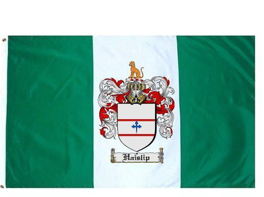 Haislip Family Crest Flag / Coat of Arms Flag. You will receive a high quality 3' x 5' Polyester flag with two brass grommets. Proudly display your family heritage with this flag, or hang as a banner on a wall. Our flags make great gifts for birthdays, weddings, anniversaries, fathers day, mothers day, groomsmen gifts, and any other occasion