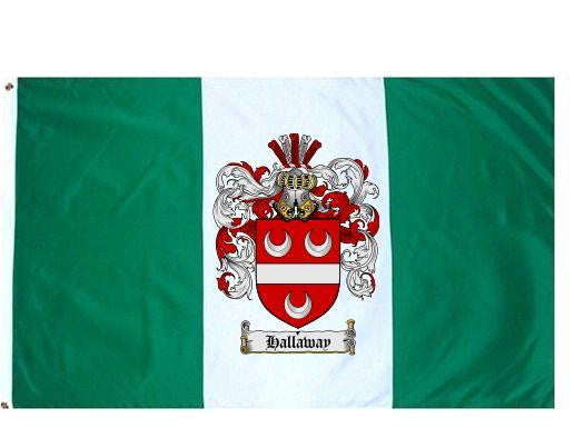 Hallaway Family Crest Flag / Coat of Arms Flag. You will receive a high quality 3' x 5' Polyester flag with two brass grommets. Proudly display your family heritage with this flag, or hang as a banner on a wall. Our flags make great gifts for birthdays, weddings, anniversaries, fathers day, mothers day, groomsmen gifts, and any other occasion