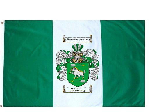 Hanlay Family Crest Flag / Coat of Arms Flag. You will receive a high quality 3' x 5' Polyester flag with two brass grommets. Proudly display your family heritage with this flag, or hang as a banner on a wall. Our flags make great gifts for birthdays, weddings, anniversaries, fathers day, mothers day, groomsmen gifts, and any other occasion