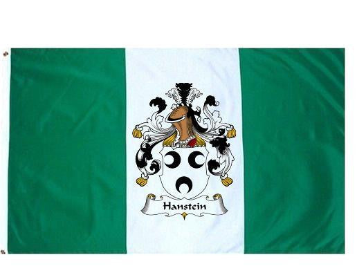 Hanstein Family Crest Flag / Coat of Arms Flag. You will receive a high quality 3' x 5' Polyester flag with two brass grommets. Proudly display your family heritage with this flag, or hang as a banner on a wall. Our flags make great gifts for birthdays, weddings, anniversaries, fathers day, mothers day, groomsmen gifts, and any other occasion