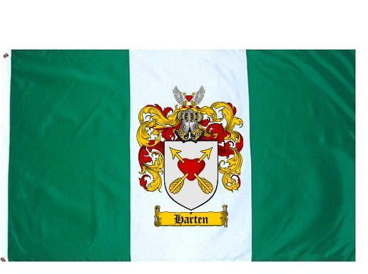 Harten Family Crest Flag / Coat of Arms Flag. You will receive a high quality 3' x 5' Polyester flag with two brass grommets. Proudly display your family heritage with this flag, or hang as a banner on a wall. Our flags make great gifts for birthdays, weddings, anniversaries, fathers day, mothers day, groomsmen gifts, and any other occasion