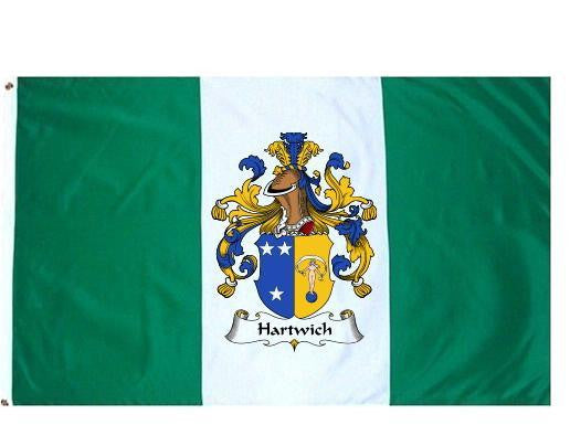 Hartwich Family Crest Flag / Coat of Arms Flag. You will receive a high quality 3' x 5' Polyester flag with two brass grommets. Proudly display your family heritage with this flag, or hang as a banner on a wall. Our flags make great gifts for birthdays, weddings, anniversaries, fathers day, mothers day, groomsmen gifts, and any other occasion