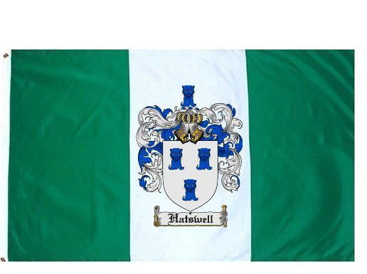 Hatswell Family Crest Flag / Coat of Arms Flag. You will receive a high quality 3' x 5' Polyester flag with two brass grommets. Proudly display your family heritage with this flag, or hang as a banner on a wall. Our flags make great gifts for birthdays, weddings, anniversaries, fathers day, mothers day, groomsmen gifts, and any other occasion