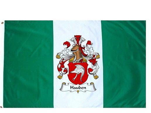Hauben Family Crest Flag / Coat of Arms Flag. You will receive a high quality 3' x 5' Polyester flag with two brass grommets. Proudly display your family heritage with this flag, or hang as a banner on a wall. Our flags make great gifts for birthdays, weddings, anniversaries, fathers day, mothers day, groomsmen gifts, and any other occasion