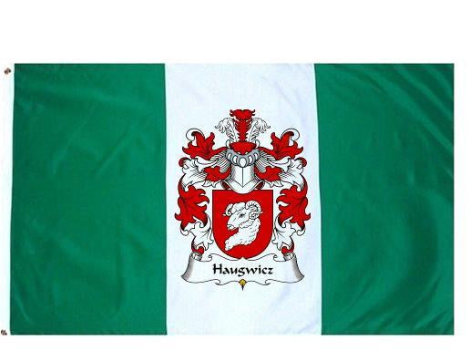 Haugwicz Family Crest Flag / Coat of Arms Flag. You will receive a high quality 3' x 5' Polyester flag with two brass grommets. Proudly display your family heritage with this flag, or hang as a banner on a wall. Our flags make great gifts for birthdays, weddings, anniversaries, fathers day, mothers day, groomsmen gifts, and any other occasion