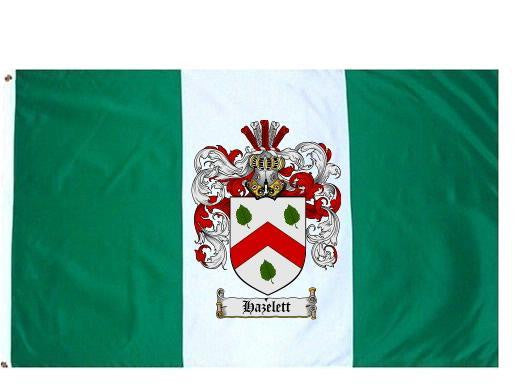 Hazelett Family Crest Flag / Coat of Arms Flag. You will receive a high quality 3' x 5' Polyester flag with two brass grommets. Proudly display your family heritage with this flag, or hang as a banner on a wall. Our flags make great gifts for birthdays, weddings, anniversaries, fathers day, mothers day, groomsmen gifts, and any other occasion