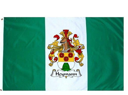 Heymann Family Crest Flag / Coat of Arms Flag. You will receive a high quality 3' x 5' Polyester flag with two brass grommets. Proudly display your family heritage with this flag, or hang as a banner on a wall. Our flags make great gifts for birthdays, weddings, anniversaries, fathers day, mothers day, groomsmen gifts, and any other occasion
