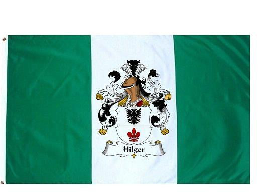 Hilger Family Crest Flag / Coat of Arms Flag. You will receive a high quality 3' x 5' Polyester flag with two brass grommets. Proudly display your family heritage with this flag, or hang as a banner on a wall. Our flags make great gifts for birthdays, weddings, anniversaries, fathers day, mothers day, groomsmen gifts, and any other occasion