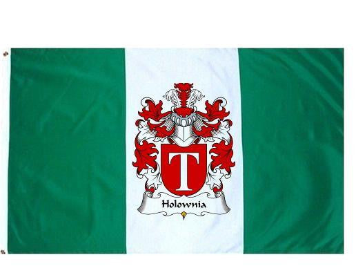 Holownia Family Crest Flag / Coat of Arms Flag. You will receive a high quality 3' x 5' Polyester flag with two brass grommets. Proudly display your family heritage with this flag, or hang as a banner on a wall. Our flags make great gifts for birthdays, weddings, anniversaries, fathers day, mothers day, groomsmen gifts, and any other occasion