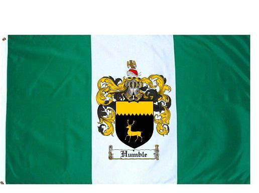 Humble Family Crest Flag / Coat of Arms Flag. You will receive a high quality 3' x 5' Polyester flag with two brass grommets. Proudly display your family heritage with this flag, or hang as a banner on a wall. Our flags make great gifts for birthdays, weddings, anniversaries, fathers day, mothers day, groomsmen gifts, and any other occasion