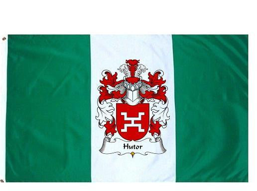 Hutor Family Crest Flag / Coat of Arms Flag. You will receive a high quality 3' x 5' Polyester flag with two brass grommets. Proudly display your family heritage with this flag, or hang as a banner on a wall. Our flags make great gifts for birthdays, weddings, anniversaries, fathers day, mothers day, groomsmen gifts, and any other occasion