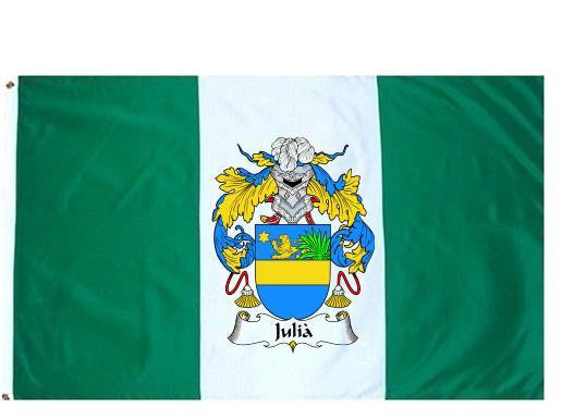Julia Family Crest Flag / Coat of Arms Flag. You will receive a high quality 3' x 5' Polyester flag with two brass grommets. Proudly display your family heritage with this flag, or hang as a banner on a wall. Our flags make great gifts for birthdays, weddings, anniversaries, fathers day, mothers day, groomsmen gifts, and any other occasion