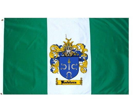 Kedziora Family Crest Flag / Coat of Arms Flag. You will receive a high quality 3' x 5' Polyester flag with two brass grommets. Proudly display your family heritage with this flag, or hang as a banner on a wall. Our flags make great gifts for birthdays, weddings, anniversaries, fathers day, mothers day, groomsmen gifts, and any other occasion