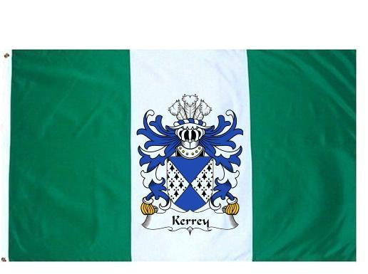 Kerrey Family Crest Flag / Coat of Arms Flag. You will receive a high quality 3' x 5' Polyester flag with two brass grommets. Proudly display your family heritage with this flag, or hang as a banner on a wall. Our flags make great gifts for birthdays, weddings, anniversaries, fathers day, mothers day, groomsmen gifts, and any other occasion