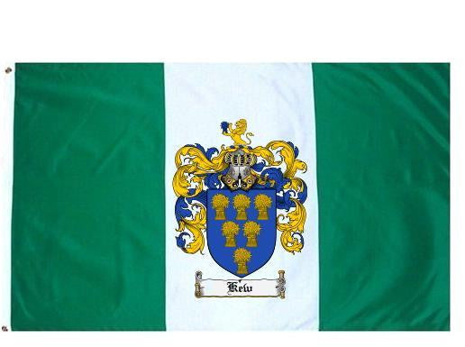 Kew Family Crest Flag / Coat of Arms Flag. You will receive a high quality 3' x 5' Polyester flag with two brass grommets. Proudly display your family heritage with this flag, or hang as a banner on a wall. Our flags make great gifts for birthdays, weddings, anniversaries, fathers day, mothers day, groomsmen gifts, and any other occasion