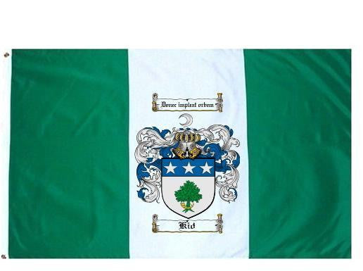 Kid Family Crest Flag / Coat of Arms Flag. You will receive a high quality 3' x 5' Polyester flag with two brass grommets. Proudly display your family heritage with this flag, or hang as a banner on a wall. Our flags make great gifts for birthdays, weddings, anniversaries, fathers day, mothers day, groomsmen gifts, and any other occasion