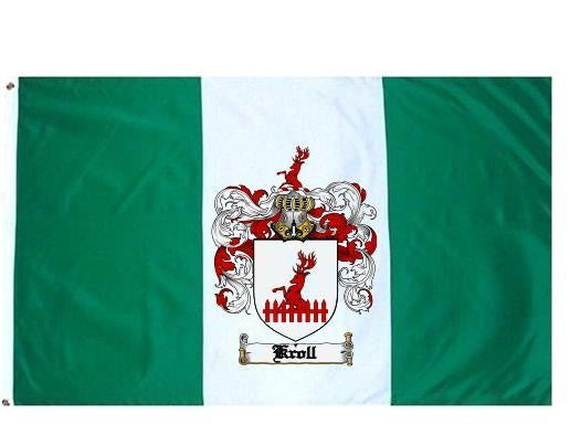 Kroll Family Crest Flag / Coat of Arms Flag. You will receive a high quality 3' x 5' Polyester flag with two brass grommets. Proudly display your family heritage with this flag, or hang as a banner on a wall. Our flags make great gifts for birthdays, weddings, anniversaries, fathers day, mothers day, groomsmen gifts, and any other occasion