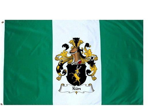 Kun Family Crest Flag / Coat of Arms Flag. You will receive a high quality 3' x 5' Polyester flag with two brass grommets. Proudly display your family heritage with this flag, or hang as a banner on a wall. Our flags make great gifts for birthdays, weddings, anniversaries, fathers day, mothers day, groomsmen gifts, and any other occasion
