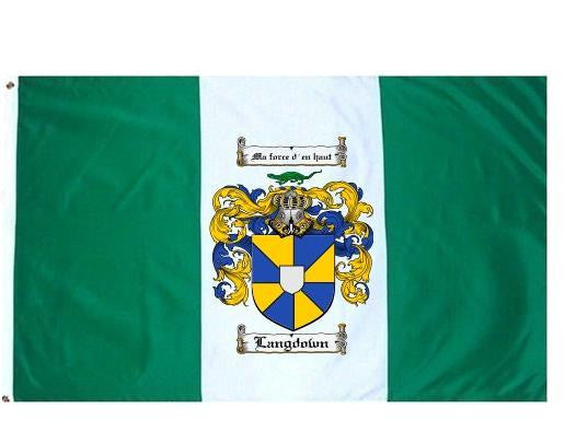 Langdown Family Crest Flag / Coat of Arms Flag. You will receive a high quality 3' x 5' Polyester flag with two brass grommets. Proudly display your family heritage with this flag, or hang as a banner on a wall. Our flags make great gifts for birthdays, weddings, anniversaries, fathers day, mothers day, groomsmen gifts, and any other occasion