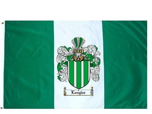 Langlee Family Crest Flag / Coat of Arms Flag. You will receive a high quality 3' x 5' Polyester flag with two brass grommets. Proudly display your family heritage with this flag, or hang as a banner on a wall. Our flags make great gifts for birthdays, weddings, anniversaries, fathers day, mothers day, groomsmen gifts, and any other occasion