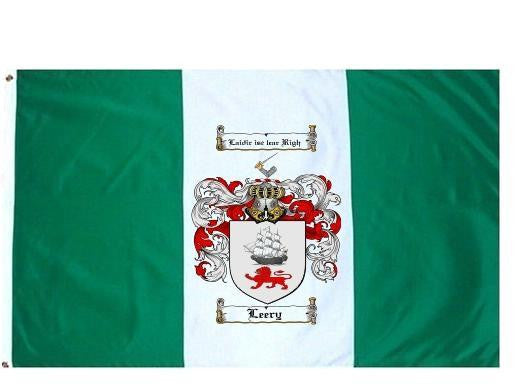 Leery Family Crest Flag / Coat of Arms Flag. You will receive a high quality 3' x 5' Polyester flag with two brass grommets. Proudly display your family heritage with this flag, or hang as a banner on a wall. Our flags make great gifts for birthdays, weddings, anniversaries, fathers day, mothers day, groomsmen gifts, and any other occasion