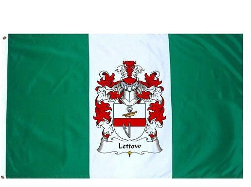 Lettow Family Crest Flag / Coat of Arms Flag. You will receive a high quality 3' x 5' Polyester flag with two brass grommets. Proudly display your family heritage with this flag, or hang as a banner on a wall. Our flags make great gifts for birthdays, weddings, anniversaries, fathers day, mothers day, groomsmen gifts, and any other occasion