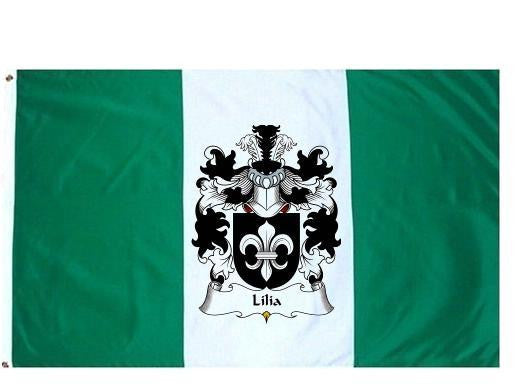 Lilia Family Crest Flag / Coat of Arms Flag. You will receive a high quality 3' x 5' Polyester flag with two brass grommets. Proudly display your family heritage with this flag, or hang as a banner on a wall. Our flags make great gifts for birthdays, weddings, anniversaries, fathers day, mothers day, groomsmen gifts, and any other occasion