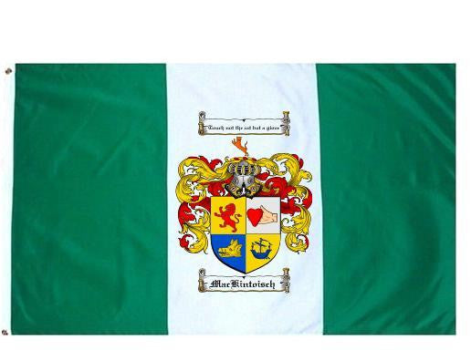 Mackintoisch Family Crest Flag / Coat of Arms Flag. You will receive a high quality 3' x 5' Polyester flag with two brass grommets. Proudly display your family heritage with this flag, or hang as a banner on a wall. Our flags make great gifts for birthdays, weddings, anniversaries, fathers day, mothers day, groomsmen gifts, and any other occasion