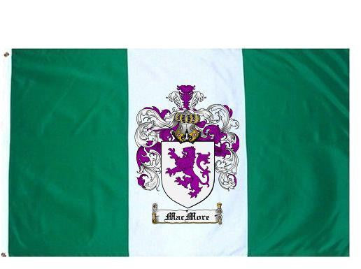 Macmore Family Crest Flag / Coat of Arms Flag. You will receive a high quality 3' x 5' Polyester flag with two brass grommets. Proudly display your family heritage with this flag, or hang as a banner on a wall. Our flags make great gifts for birthdays, weddings, anniversaries, fathers day, mothers day, groomsmen gifts, and any other occasion