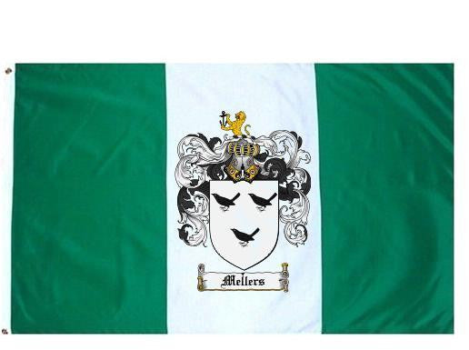 Mellers Family Crest Flag / Coat of Arms Flag. You will receive a high quality 3' x 5' Polyester flag with two brass grommets. Proudly display your family heritage with this flag, or hang as a banner on a wall. Our flags make great gifts for birthdays, weddings, anniversaries, fathers day, mothers day, groomsmen gifts, and any other occasion