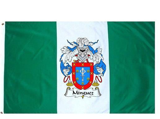 Minguez Family Crest Flag / Coat of Arms Flag. You will receive a high quality 3' x 5' Polyester flag with two brass grommets. Proudly display your family heritage with this flag, or hang as a banner on a wall. Our flags make great gifts for birthdays, weddings, anniversaries, fathers day, mothers day, groomsmen gifts, and any other occasion