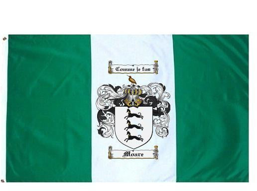 Moare Family Crest Flag / Coat of Arms Flag. You will receive a high quality 3' x 5' Polyester flag with two brass grommets. Proudly display your family heritage with this flag, or hang as a banner on a wall. Our flags make great gifts for birthdays, weddings, anniversaries, fathers day, mothers day, groomsmen gifts, and any other occasion