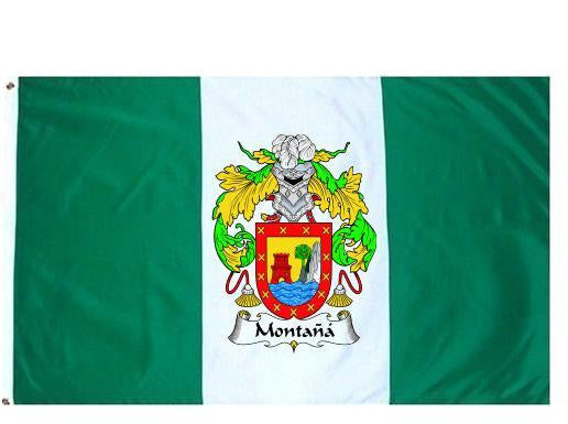 Montana Family Crest Flag / Coat of Arms Flag. You will receive a high quality 3' x 5' Polyester flag with two brass grommets. Proudly display your family heritage with this flag, or hang as a banner on a wall. Our flags make great gifts for birthdays, weddings, anniversaries, fathers day, mothers day, groomsmen gifts, and any other occasion