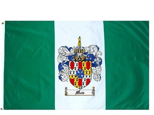 Mos Family Crest Flag / Coat of Arms Flag. You will receive a high quality 3' x 5' Polyester flag with two brass grommets. Proudly display your family heritage with this flag, or hang as a banner on a wall. Our flags make great gifts for birthdays, weddings, anniversaries, fathers day, mothers day, groomsmen gifts, and any other occasion