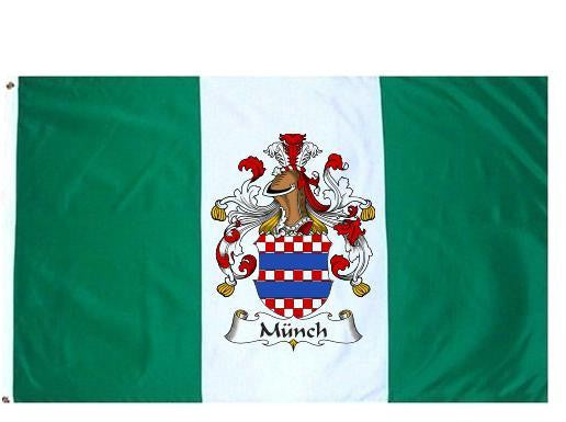 Munch Family Crest Flag / Coat of Arms Flag. You will receive a high quality 3' x 5' Polyester flag with two brass grommets. Proudly display your family heritage with this flag, or hang as a banner on a wall. Our flags make great gifts for birthdays, weddings, anniversaries, fathers day, mothers day, groomsmen gifts, and any other occasion