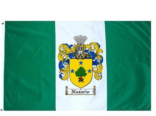 Nazario Family Crest Flag / Coat of Arms Flag. You will receive a high quality 3' x 5' Polyester flag with two brass grommets. Proudly display your family heritage with this flag, or hang as a banner on a wall. Our flags make great gifts for birthdays, weddings, anniversaries, fathers day, mothers day, groomsmen gifts, and any other occasion