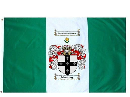 Neevey Family Crest Flag / Coat of Arms Flag. You will receive a high quality 3' x 5' Polyester flag with two brass grommets. Proudly display your family heritage with this flag, or hang as a banner on a wall. Our flags make great gifts for birthdays, weddings, anniversaries, fathers day, mothers day, groomsmen gifts, and any other occasion