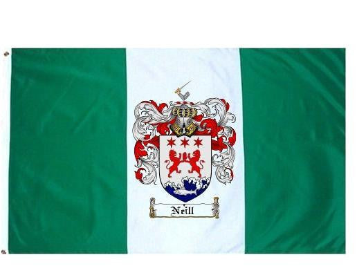 Neill Family Crest Flag / Coat of Arms Flag. You will receive a high quality 3' x 5' Polyester flag with two brass grommets. Proudly display your family heritage with this flag, or hang as a banner on a wall. Our flags make great gifts for birthdays, weddings, anniversaries, fathers day, mothers day, groomsmen gifts, and any other occasion