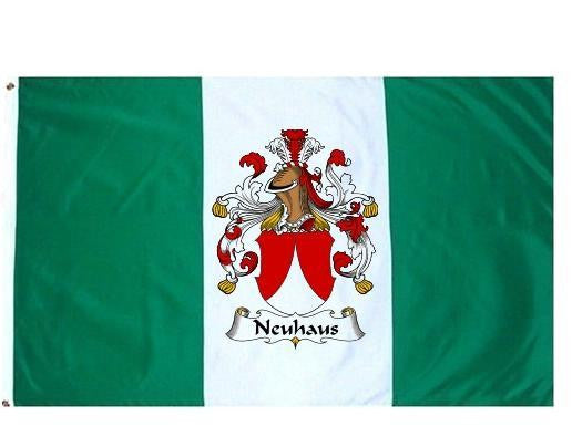 Neuhaus Family Crest Flag / Coat of Arms Flag. You will receive a high quality 3' x 5' Polyester flag with two brass grommets. Proudly display your family heritage with this flag, or hang as a banner on a wall. Our flags make great gifts for birthdays, weddings, anniversaries, fathers day, mothers day, groomsmen gifts, and any other occasion