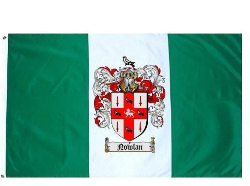 Nowlan Family Crest Flag / Coat of Arms Flag. You will receive a high quality 3' x 5' Polyester flag with two brass grommets. Proudly display your family heritage with this flag, or hang as a banner on a wall. Our flags make great gifts for birthdays, weddings, anniversaries, fathers day, mothers day, groomsmen gifts, and any other occasion