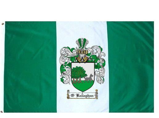O'Kallaghan Family Crest Flag / Coat of Arms Flag. You will receive a high quality 3' x 5' Polyester flag with two brass grommets. Proudly display your family heritage with this flag, or hang as a banner on a wall. Our flags make great gifts for birthdays, weddings, anniversaries, fathers day, mothers day, groomsmen gifts, and any other occasion