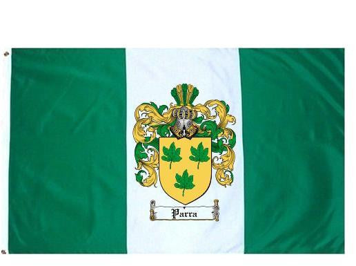 Parra Family Crest Flag / Coat of Arms Flag. You will receive a high quality 3' x 5' Polyester flag with two brass grommets. Proudly display your family heritage with this flag, or hang as a banner on a wall. Our flags make great gifts for birthdays, weddings, anniversaries, fathers day, mothers day, groomsmen gifts, and any other occasion