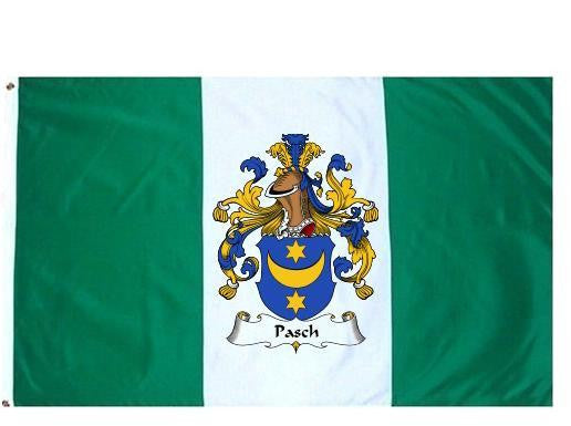 Pasch Family Crest Flag / Coat of Arms Flag. You will receive a high quality 3' x 5' Polyester flag with two brass grommets. Proudly display your family heritage with this flag, or hang as a banner on a wall. Our flags make great gifts for birthdays, weddings, anniversaries, fathers day, mothers day, groomsmen gifts, and any other occasion
