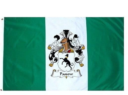 Passow Family Crest Flag / Coat of Arms Flag. You will receive a high quality 3' x 5' Polyester flag with two brass grommets. Proudly display your family heritage with this flag, or hang as a banner on a wall. Our flags make great gifts for birthdays, weddings, anniversaries, fathers day, mothers day, groomsmen gifts, and any other occasion