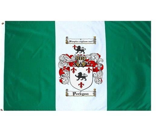 Perkynn Family Crest Flag / Coat of Arms Flag. You will receive a high quality 3' x 5' Polyester flag with two brass grommets. Proudly display your family heritage with this flag, or hang as a banner on a wall. Our flags make great gifts for birthdays, weddings, anniversaries, fathers day, mothers day, groomsmen gifts, and any other occasion