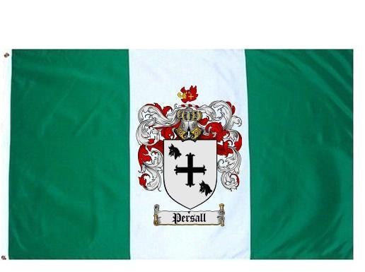 Persall Family Crest Flag / Coat of Arms Flag. You will receive a high quality 3' x 5' Polyester flag with two brass grommets. Proudly display your family heritage with this flag, or hang as a banner on a wall. Our flags make great gifts for birthdays, weddings, anniversaries, fathers day, mothers day, groomsmen gifts, and any other occasion