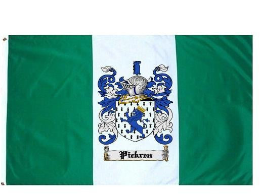 Pickren Family Crest Flag / Coat of Arms Flag. You will receive a high quality 3' x 5' Polyester flag with two brass grommets. Proudly display your family heritage with this flag, or hang as a banner on a wall. Our flags make great gifts for birthdays, weddings, anniversaries, fathers day, mothers day, groomsmen gifts, and any other occasion