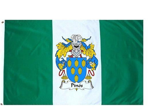 Pinos Family Crest Flag / Coat of Arms Flag. You will receive a high quality 3' x 5' Polyester flag with two brass grommets. Proudly display your family heritage with this flag, or hang as a banner on a wall. Our flags make great gifts for birthdays, weddings, anniversaries, fathers day, mothers day, groomsmen gifts, and any other occasion