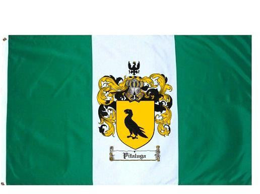 Pitaluga Family Crest Flag / Coat of Arms Flag. You will receive a high quality 3' x 5' Polyester flag with two brass grommets. Proudly display your family heritage with this flag, or hang as a banner on a wall. Our flags make great gifts for birthdays, weddings, anniversaries, fathers day, mothers day, groomsmen gifts, and any other occasion